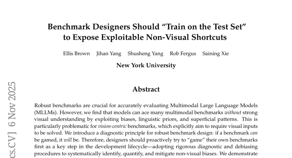 9. Benchmark Designers Should “Train on the Test Set” to Expose Exploitable Non-Visual Shortcuts
