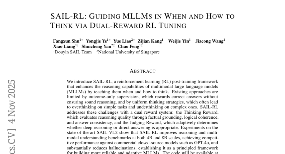 – The research introduces SAIL-RL, a post-training reinforcement learning framework aimed at enhancing the reasoning abilities of multimodal large language models (MLLMs).