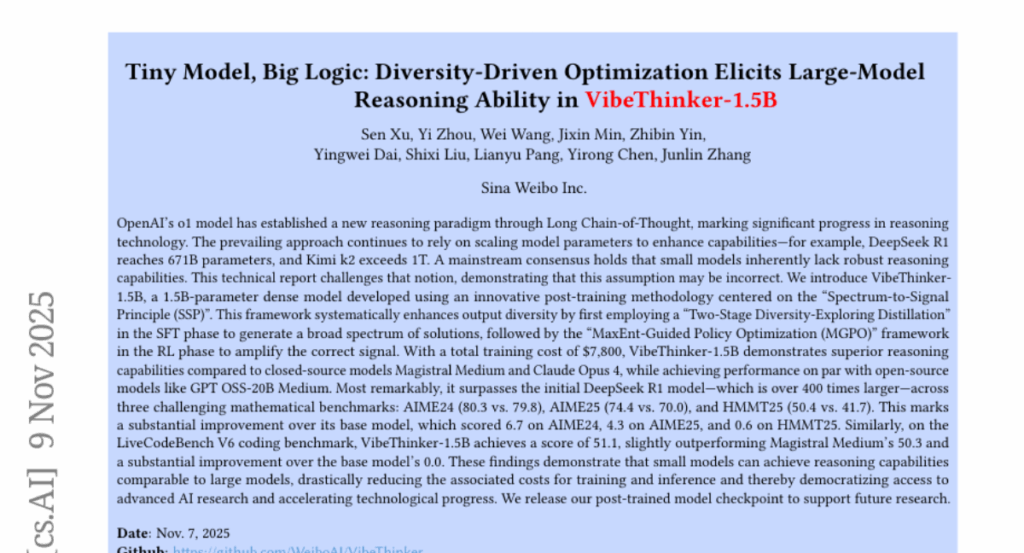 2. Tiny Model, Big Logic: Diversity-Driven Optimization Elicits Large-Model Reasoning Ability in VibeThinker-1.5B