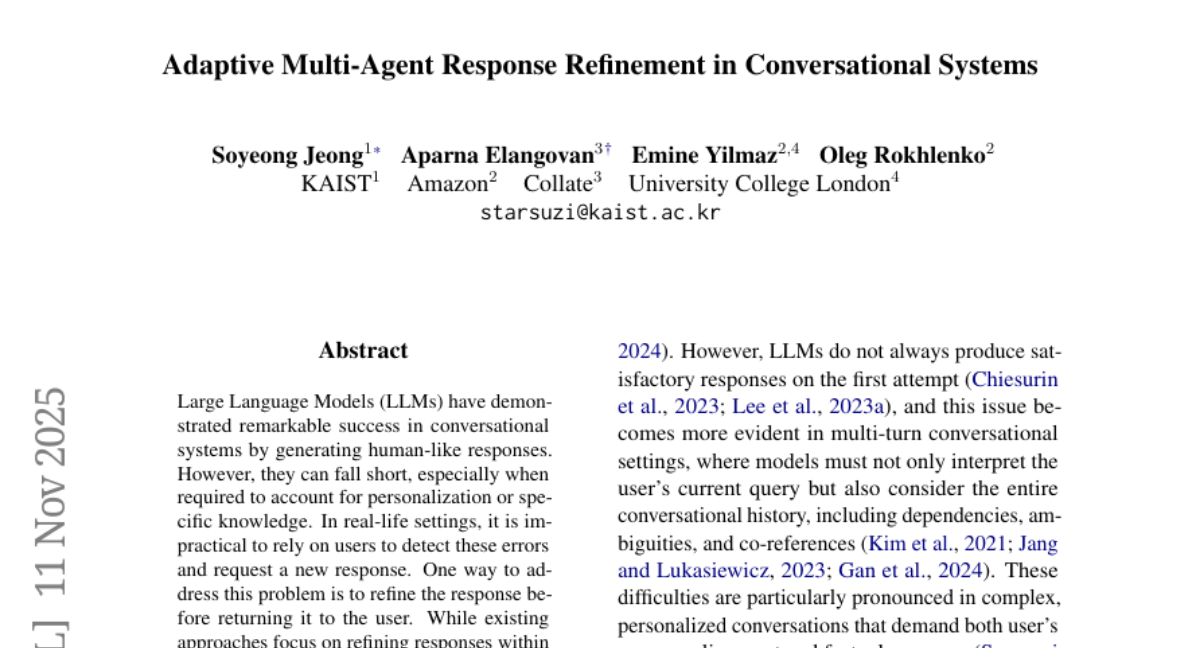 – To refine conversational responses by addressing factuality, personalization, and coherence using a multi-agent framework.