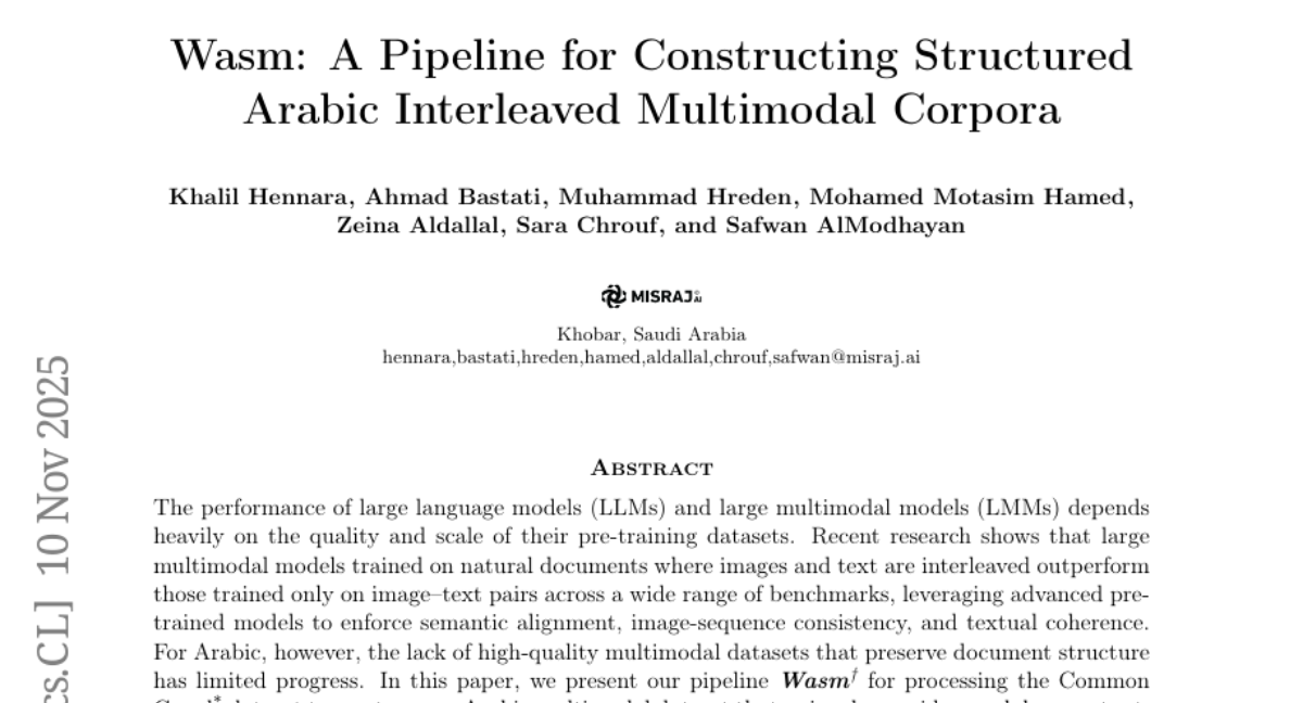 – Develop a pipeline, Wasm, that processes the Common Crawl dataset to create an Arabic multimodal dataset, preserving document structure for effective pre-training.