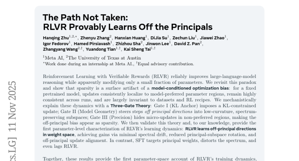๐ Keywords: Reinforcement Learning, Large Language Models, Verifiable Rewards, Parameter-level Characterization, Sparse Fine-Tuning