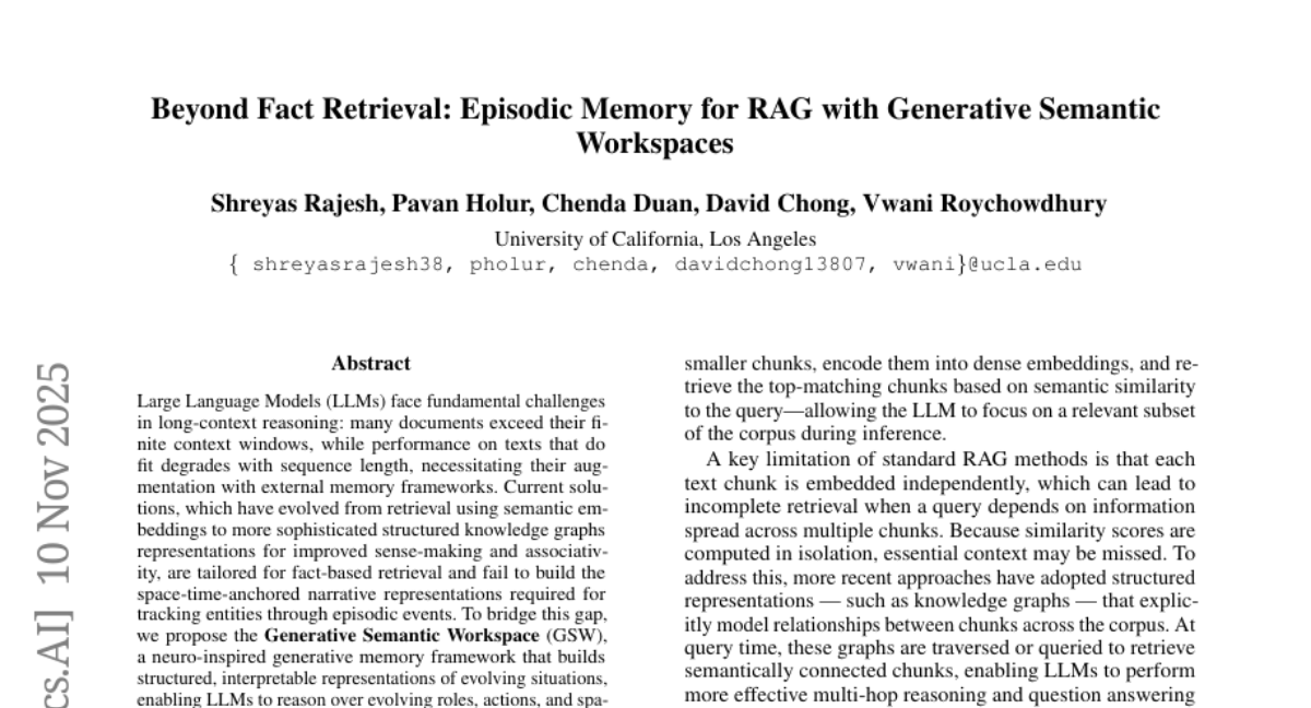 9. Beyond Fact Retrieval: Episodic Memory for RAG with Generative Semantic Workspaces