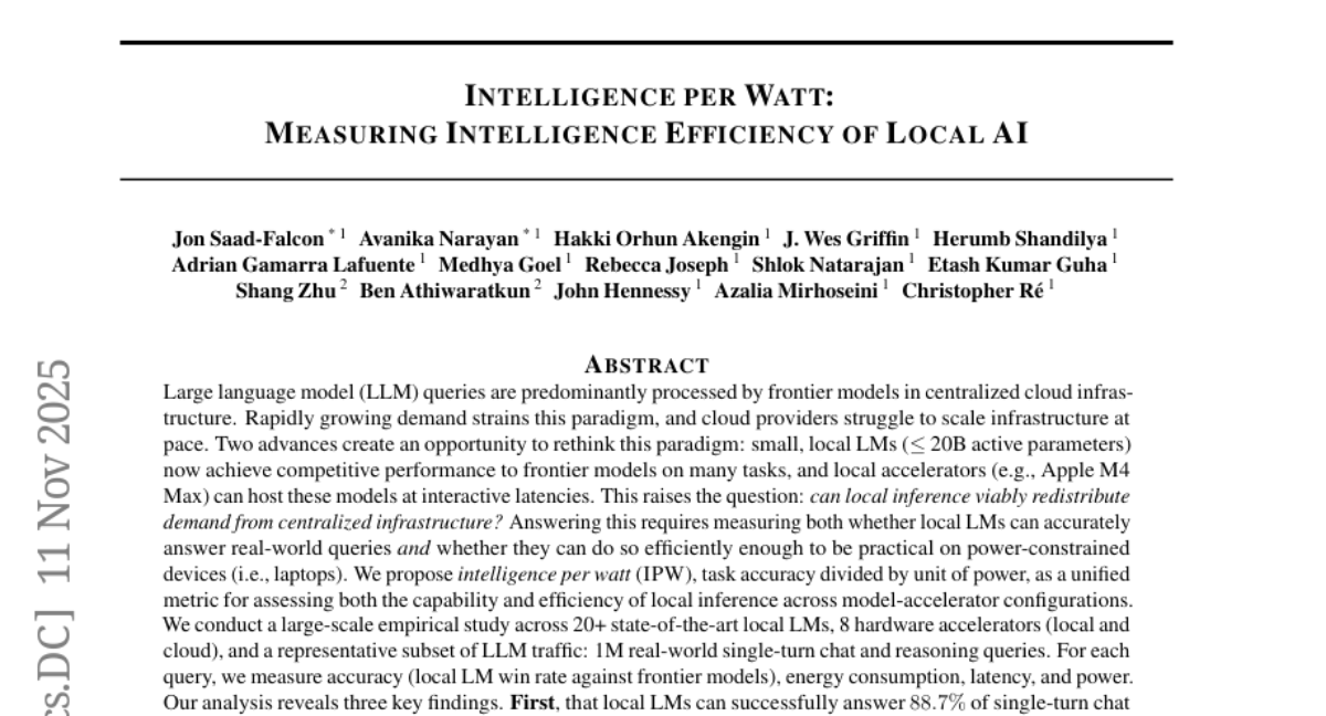 ๐ Keywords: Local inference, Small language models, Intelligence per watt, Local accelerators, Task accuracy