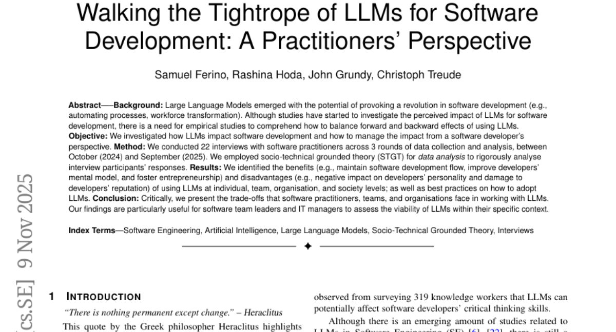 ๐ Keywords: LLMs, AI-generated summary, socio-technical grounded theory, software development