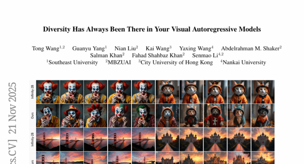 – Introduce DiverseVAR, a method to enhance generative diversity in Visual Autoregressive models without additional training.