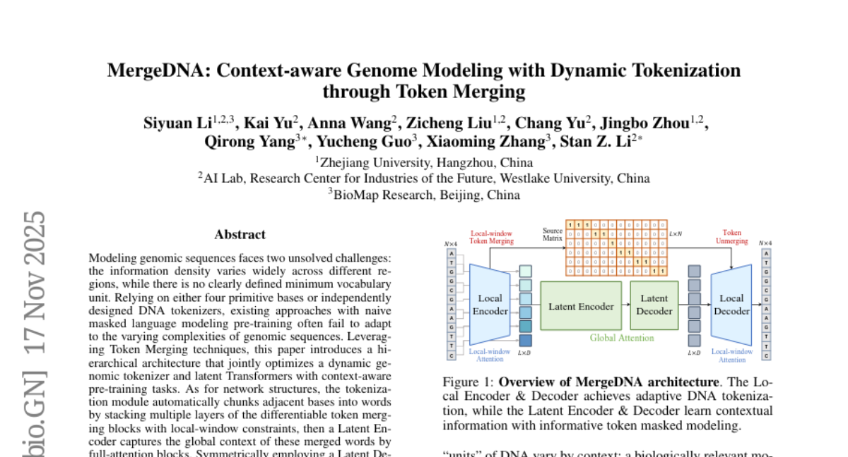 13. MergeDNA: Context-aware Genome Modeling with Dynamic Tokenization through Token Merging