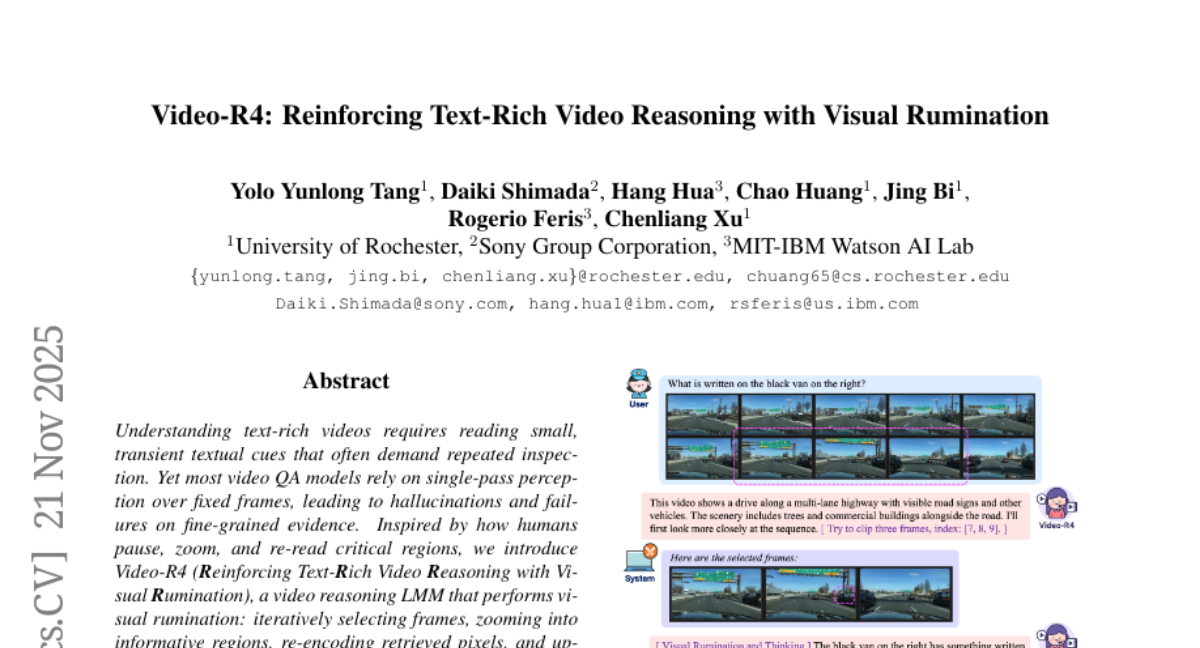 17. Video-R4: Reinforcing Text-Rich Video Reasoning with Visual Rumination