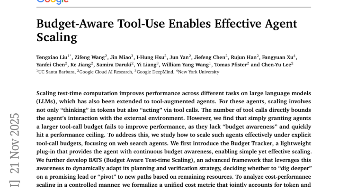 – The research aims to improve scaling of tool-augmented agents by introducing continuous budget awareness and adaptive planning for better cost-performance trade-offs.
