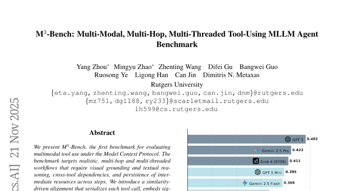 – Introduce M^3-Bench, a benchmark evaluating multimodal tool use with focus on visual grounding, textual reasoning, and cross-tool dependencies.