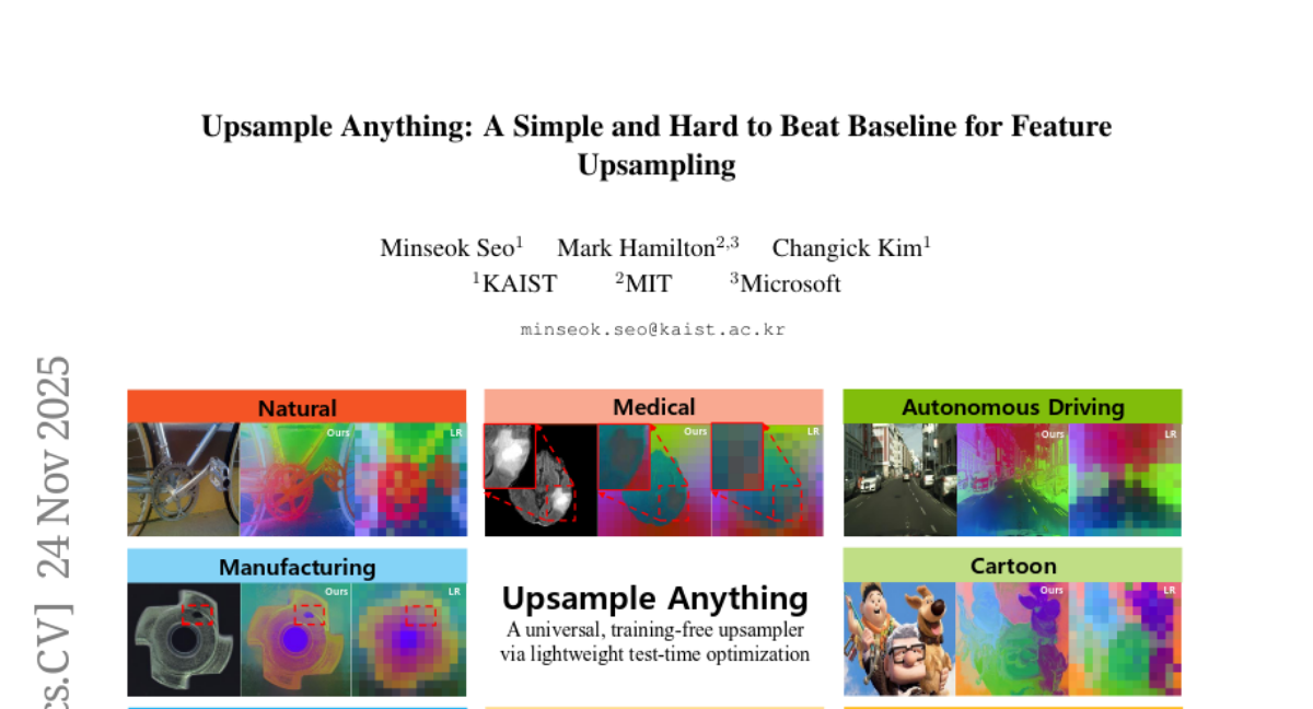 – Upsample Anything achieves state-of-the-art performance in tasks such as semantic segmentation and depth estimation, running in approximately 0.419 seconds per 224×224 image.