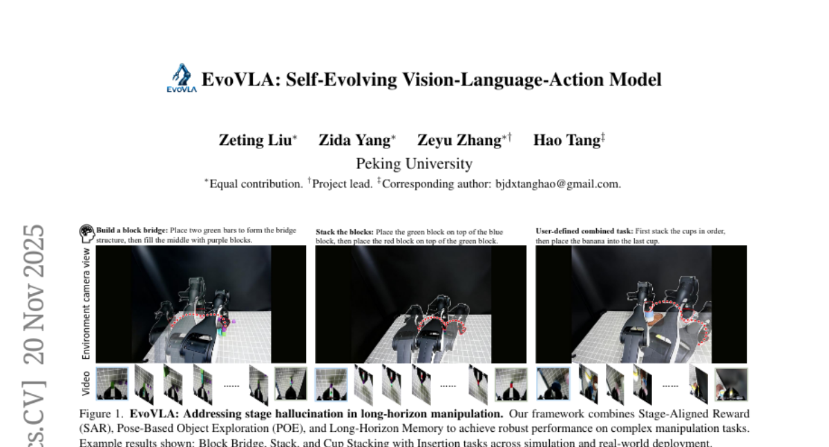 – The paper presents EvoVLA, a self-supervised framework designed to improve long-horizon robotic manipulation by addressing stage hallucination through advanced learning techniques.