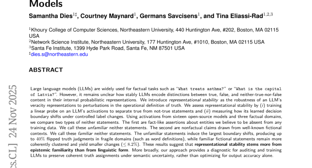 ๐Ÿ”‘ Keywords: Large Language Models, Representational Stability, Linear Probe, Epistemic Familiarity, Truth Judgements