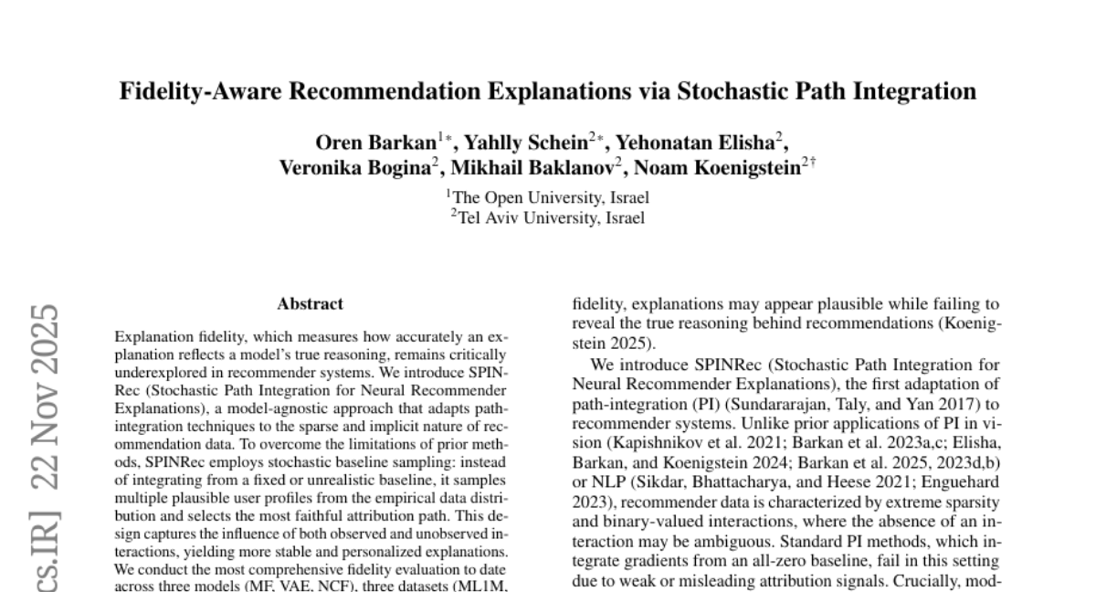 ๐Ÿ”‘ Keywords: Explanation fidelity, SPINRec, path-integration, stochastic baseline sampling, recommendation systems