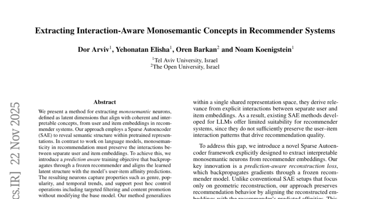 – The research aims to extract interpretable latent dimensions from embeddings in recommender systems to support controllable personalization.