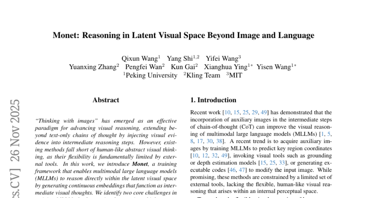 ๐ Keywords: Monet, MLLMs, latent visual space, continuous embeddings, Visual-latent Policy Optimization