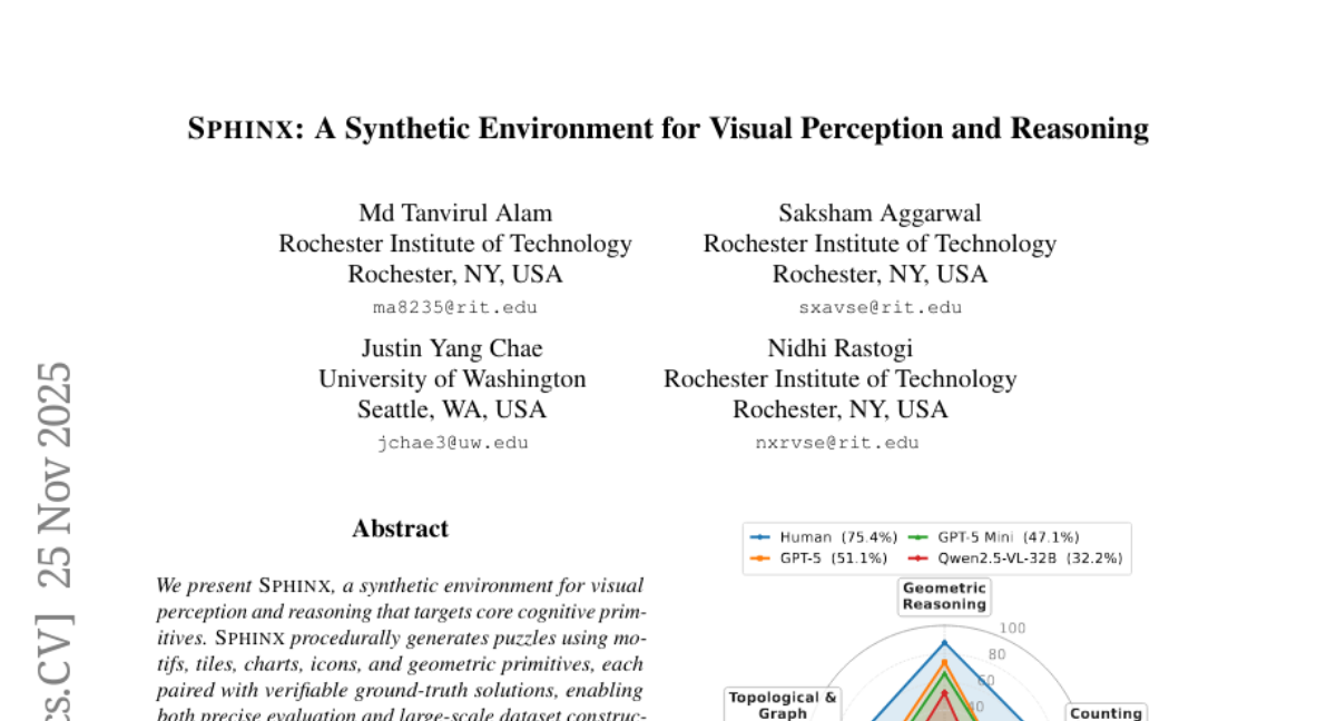 – Sphinx generates puzzles with verifiable solutions and uses motifs, tiles, charts, icons, and geometric primitives for task creation. It employs reinforcement learning with verifiable rewards to improve model accuracy.