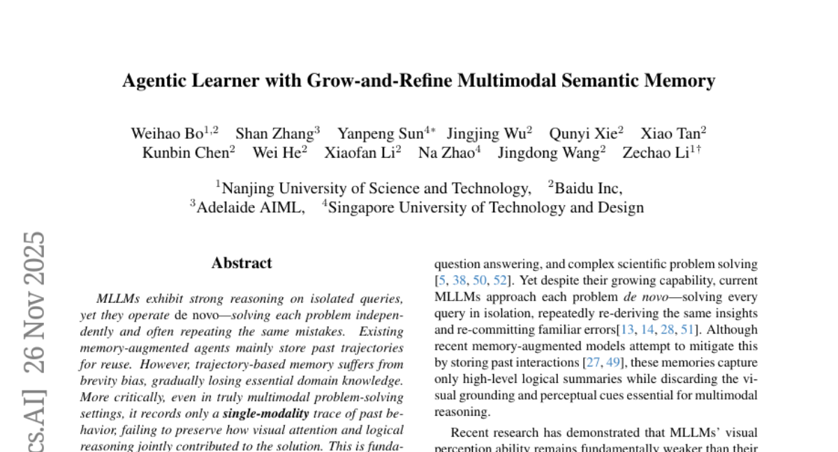 – Introduction of ViLoMem, a framework that constructs compact, schema-based memory by separately encoding visual distraction patterns and logical reasoning errors.