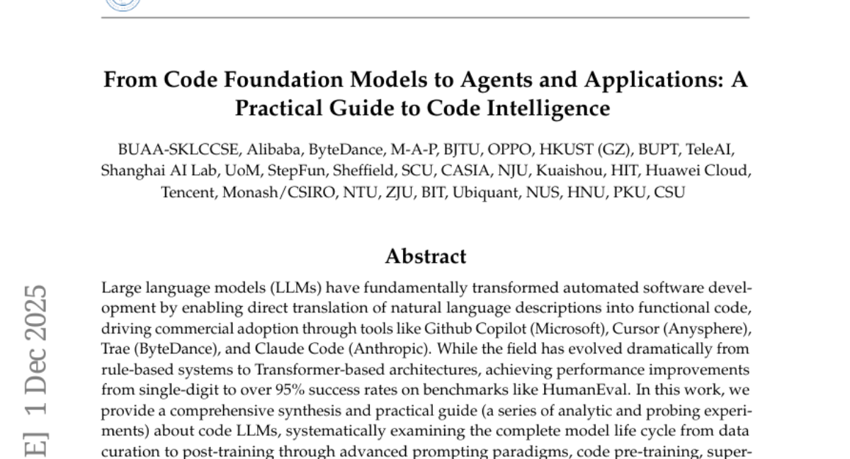 – Provide a comprehensive guide and practical synthesis of code LLMs, covering the full lifecycle from data curation to deployment, including methods, trade-offs, and the research-practice gap.