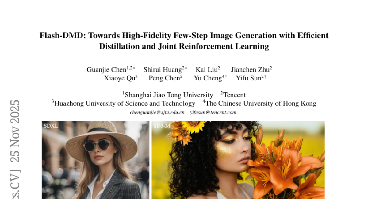 – Introduce Flash-DMD to accelerate and stabilize the training of generative diffusion models while maintaining high generation quality and reducing computational cost.