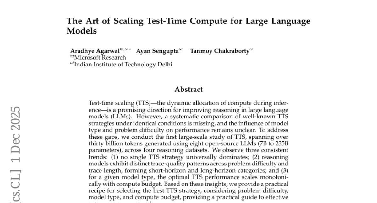 ๐ Keywords: Test-time scaling, large language models, inference, compute budget, reasoning datasets