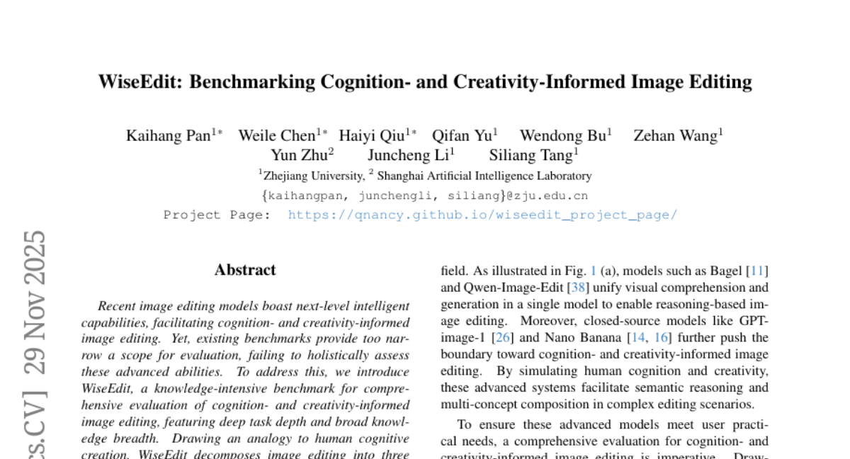 – WiseEdit highlights the limitations of existing state-of-the-art image editing models in handling knowledge-based reasoning and creative composition, with public availability of the benchmark and resources enhancing evaluation transparency.