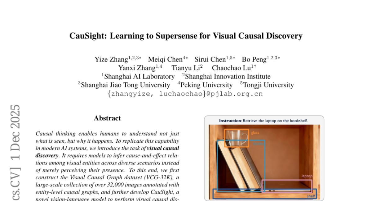 – The paper introduces CauSight, a novel vision-language model designed to perform visual causal discovery by inferring cause-and-effect relationships in images.