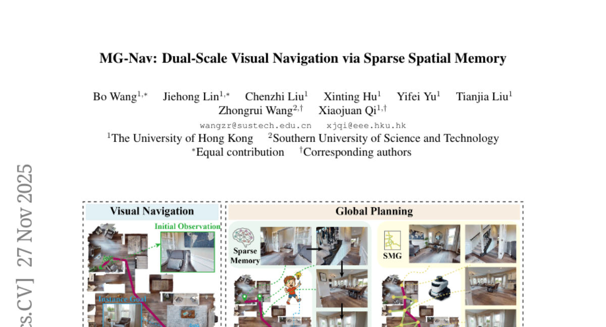 – The paper introduces MG-Nav, a dual-scale framework designed for zero-shot visual navigation by integrating global memory-guided planning with local geometry-enhanced control.