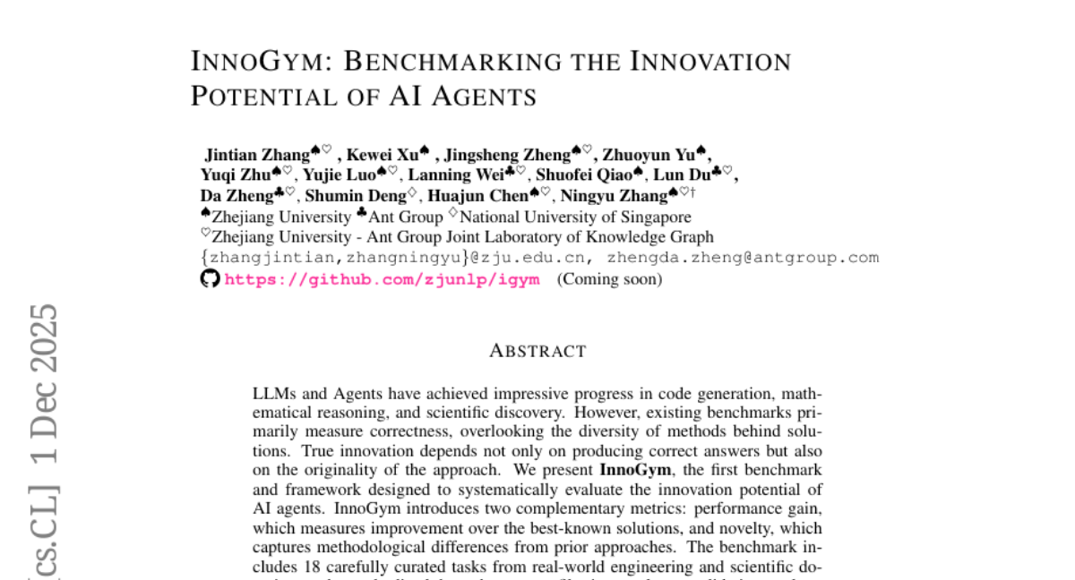 – The paper introduces InnoGym, a benchmark and framework designed to evaluate the innovation potential of AI agents by assessing both the performance gain and originality of their approaches.