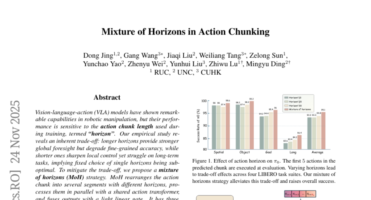 ๐ Keywords: Mixture of Horizons (MoH), Vision-Language-Action (VLA) models, Horizon, Robotic manipulation, Performance