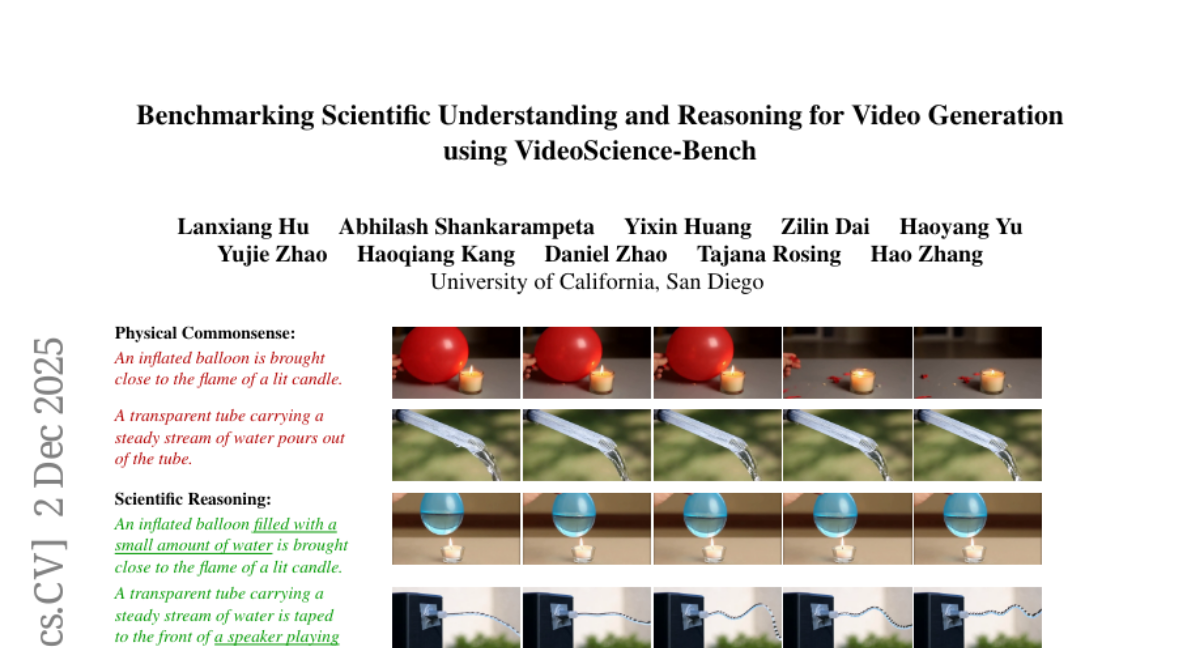 – VideoScience-Bench is the first benchmark to test video models as both generators and reasoners, demonstrating strong correlation with human assessments and requiring scientific understanding.