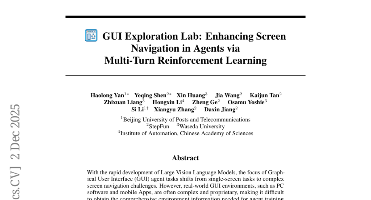 – To address challenges in training and evaluating GUI agents in complex real-world GUI environments by introducing the GUI Exploration Lab.