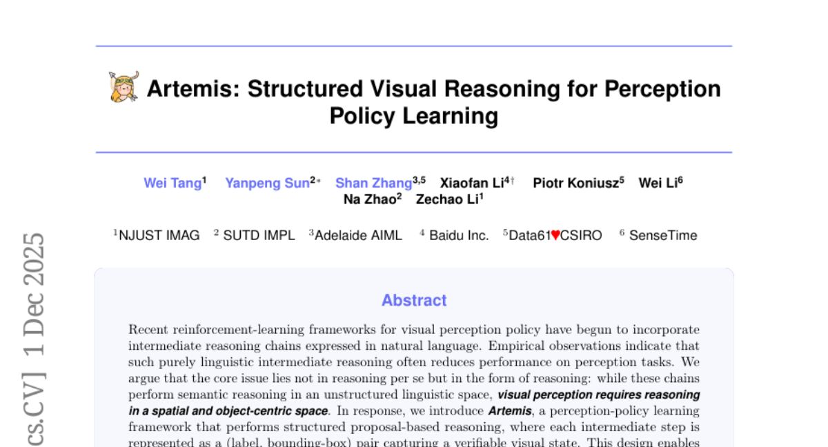 – The study introduces Artemis, a perception-policy learning framework designed to enhance performance on visual tasks by utilizing structured spatial reasoning with (label, bounding-box) pairs instead of relying solely on linguistic reasoning.