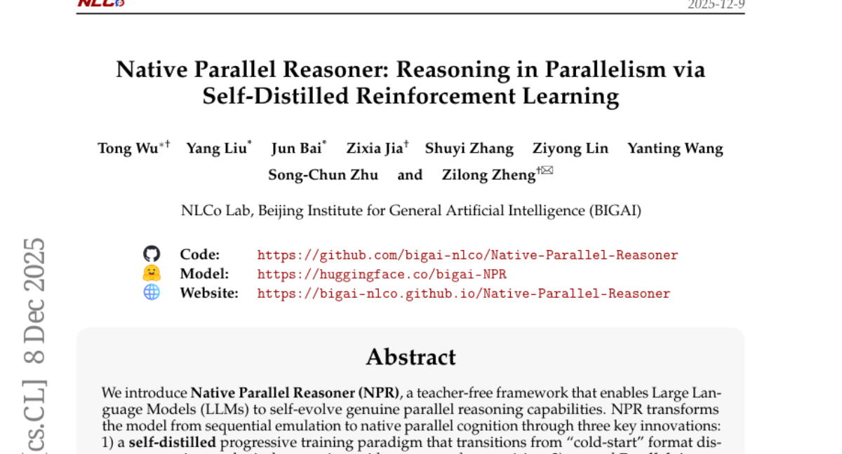๐ Keywords: NPR, Large Language Models, self-distilled training, Parallel-Aware Policy Optimization, genuine parallel reasoning