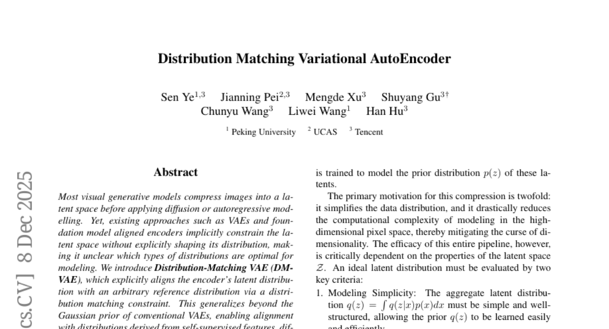 ๐ Keywords: DMVAE, latent distribution, distribution-level alignment, SSL-derived distributions, image synthesis fidelity
