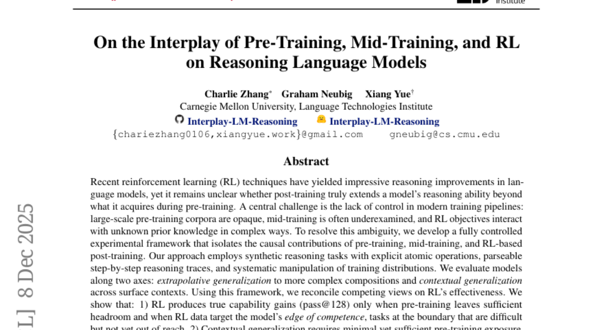 13. On the Interplay of Pre-Training, Mid-Training, and RL on Reasoning Language Models