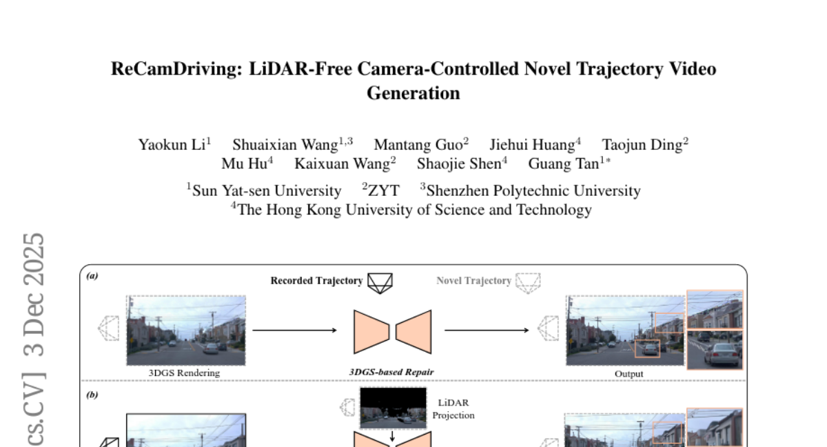 – Propose ReCamDriving, a purely vision-based, camera-controlled video generation framework using novel-trajectory videos.
