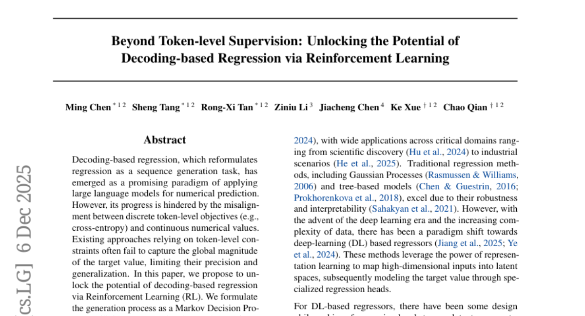 17. Beyond Token-level Supervision: Unlocking the Potential of Decoding-based Regression via Reinforcement Learning