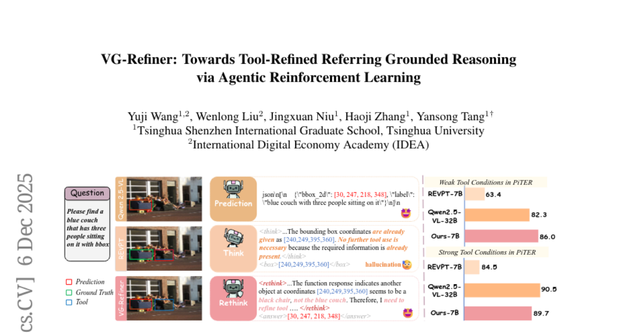๐ Keywords: Tool-integrated visual reasoning, VG-Refiner, think-rethink mechanism, refinement reward, referring and grounding tasks