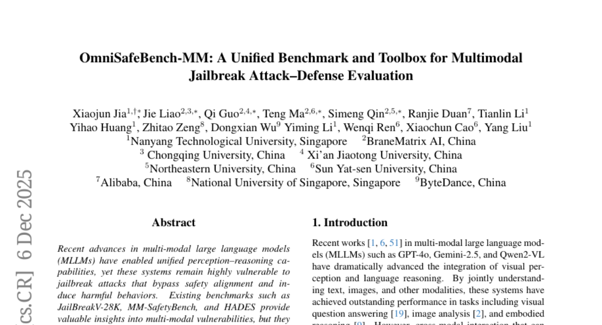 – OmniSafeBench-MM reveals the vulnerability of MLLMs to multi-modal jailbreaks and offers an open-source, reproducible platform for research enhancement.