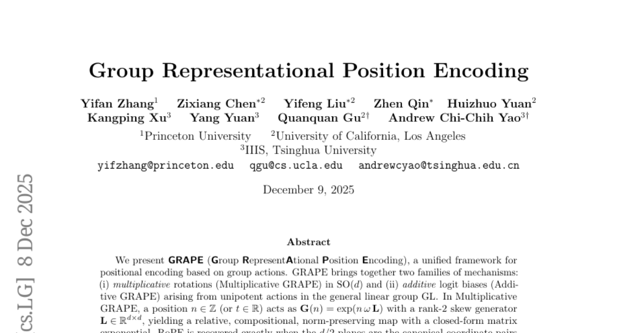 ๐ Keywords: GRAPE, positional encoding, multiplicative rotations, additive logit biases, RoPE, ALiBi