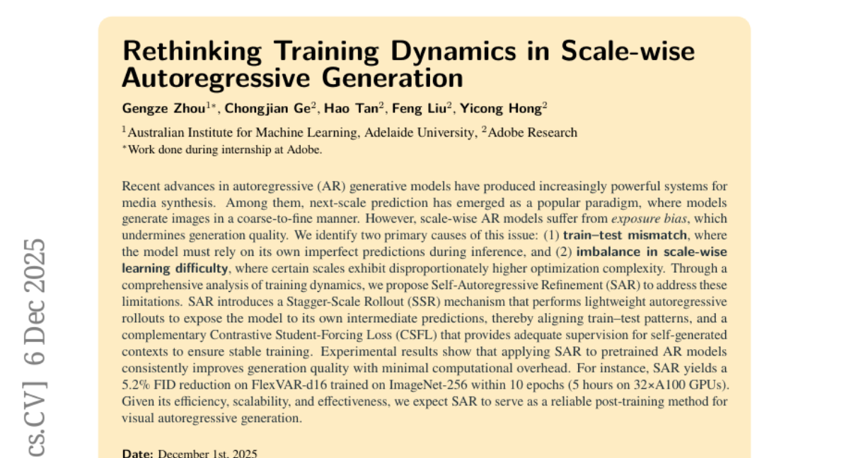 ๐ Keywords: Self-Autoregressive Refinement, exposure bias, Stagger-Scale Rollout, Contrastive Student-Forcing Loss, autoregressive models