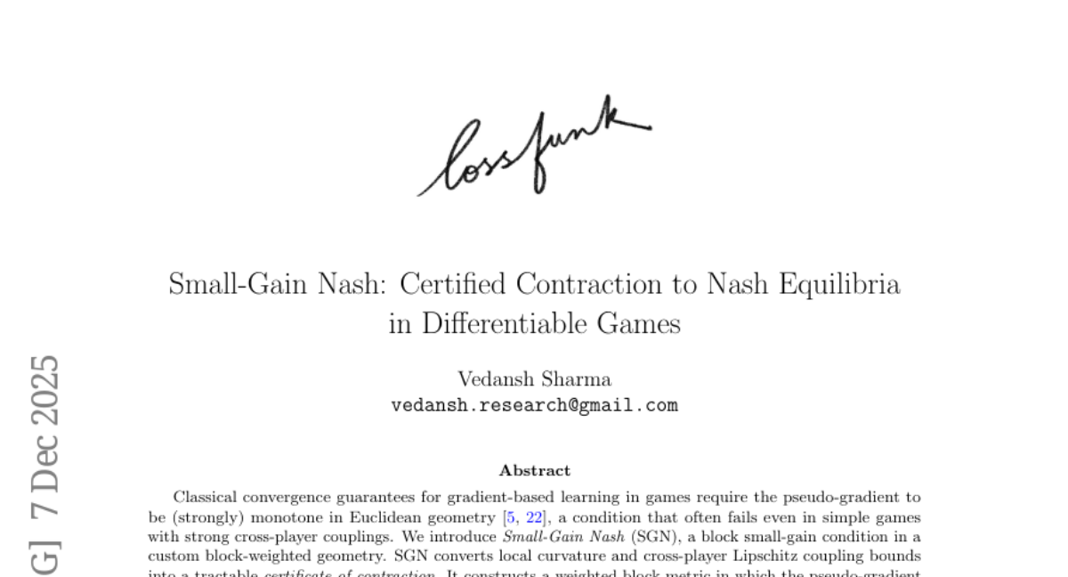 26. Small-Gain Nash: Certified Contraction to Nash Equilibria in Differentiable Games