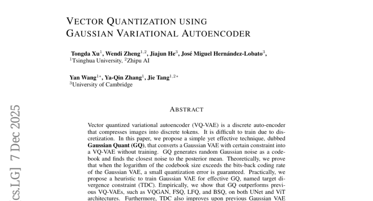– The paper proposes Gaussian Quant (GQ), a method to convert Gaussian VAE into a VQ-VAE without retraining, introducing improvements over previous models.