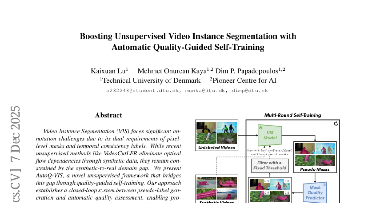 ๐ Keywords: AI Native, Video Instance Segmentation, unsupervised methods, quality-guided self-training, synthetic-to-real domain gap