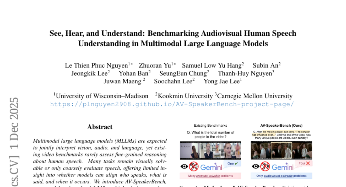 ๐ Keywords: AV-SpeakerBench, Multimodal Large Language Models, Speaker-centric, Audiovisual Reasoning, Audiovisual Fusion