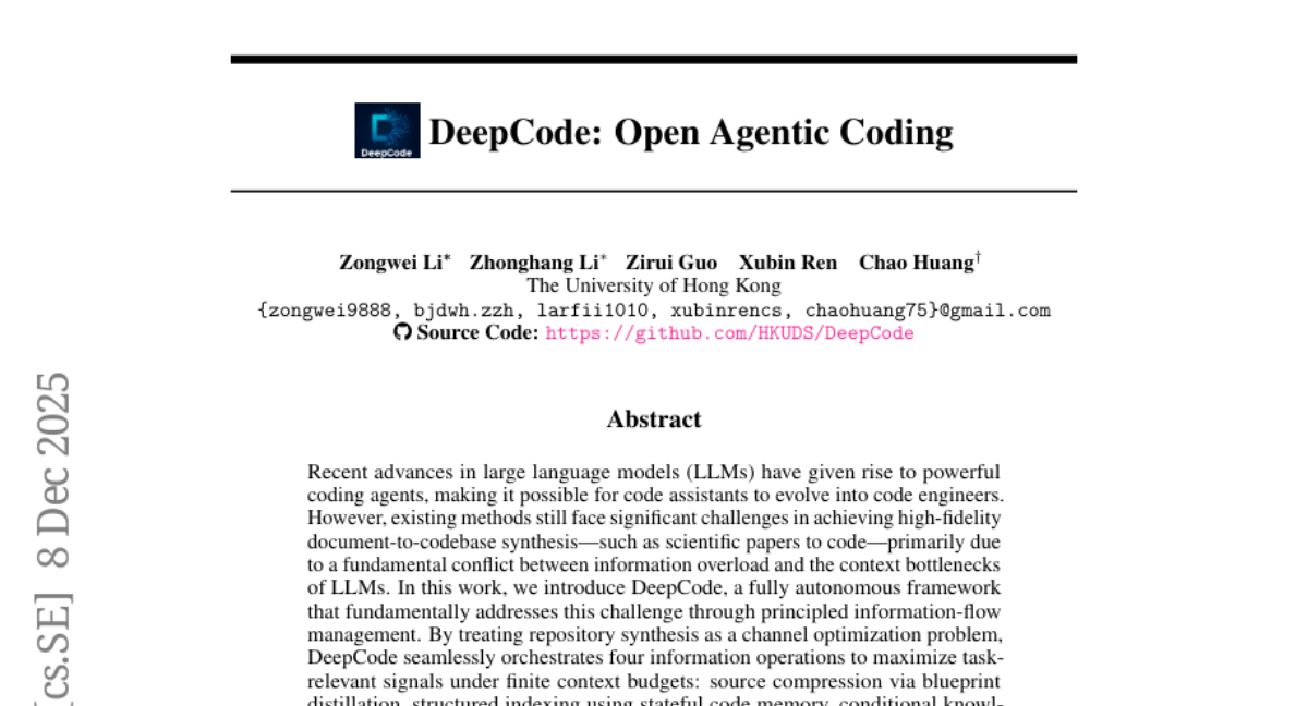– The research aims to address challenges in document-to-codebase synthesis with an autonomous framework, DeepCode, which optimizes information flow for superior performance.