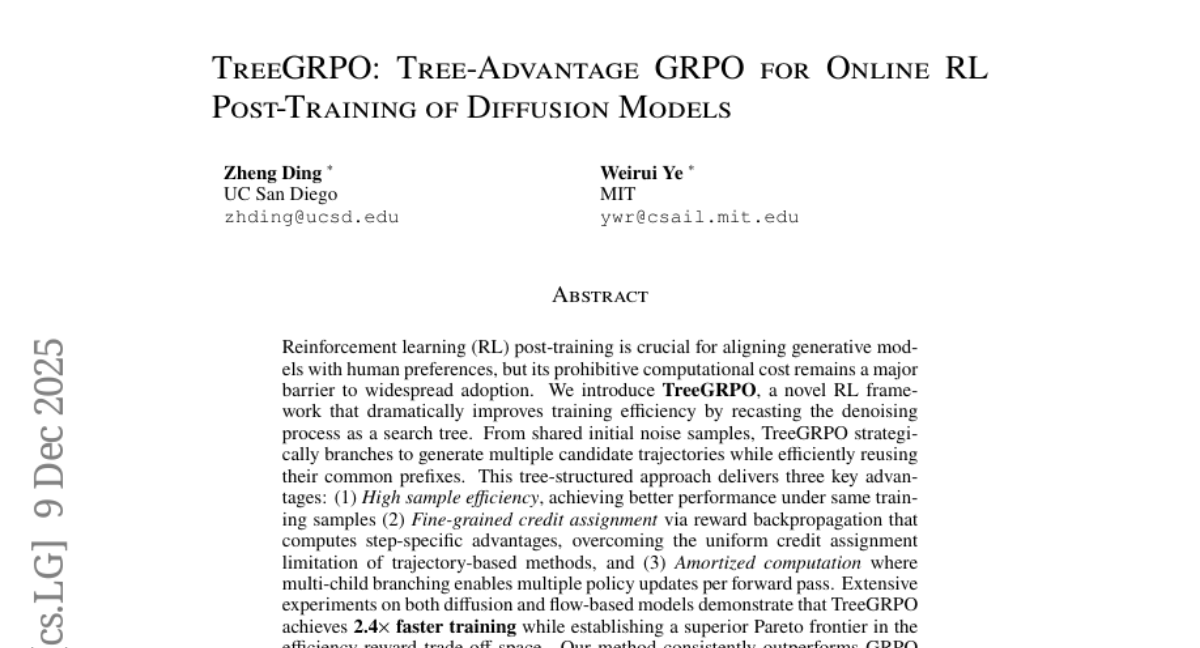 – To enhance training efficiency for generative models by introducing TreeGRPO, which recasts the denoising process as a search tree.