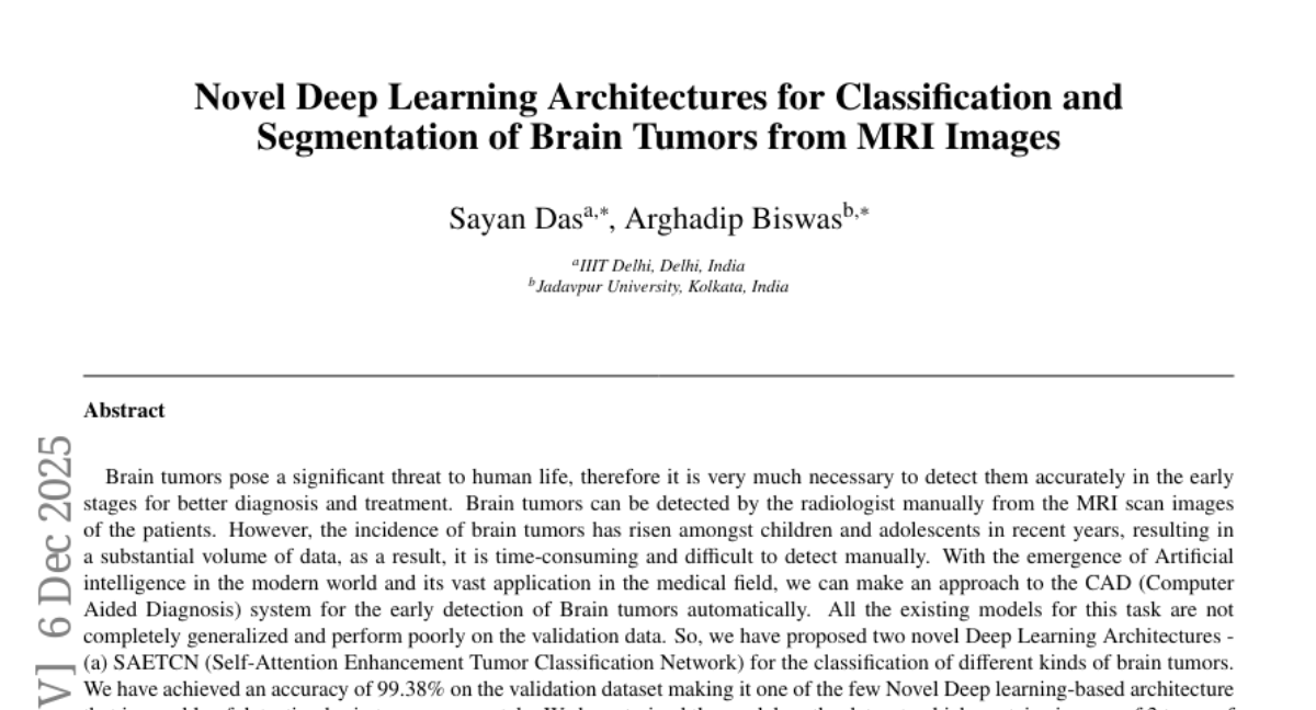 ๐ Keywords: Brain tumor detection, AI in Healthcare, Deep Learning architectures, SAETCN, SAS-Net