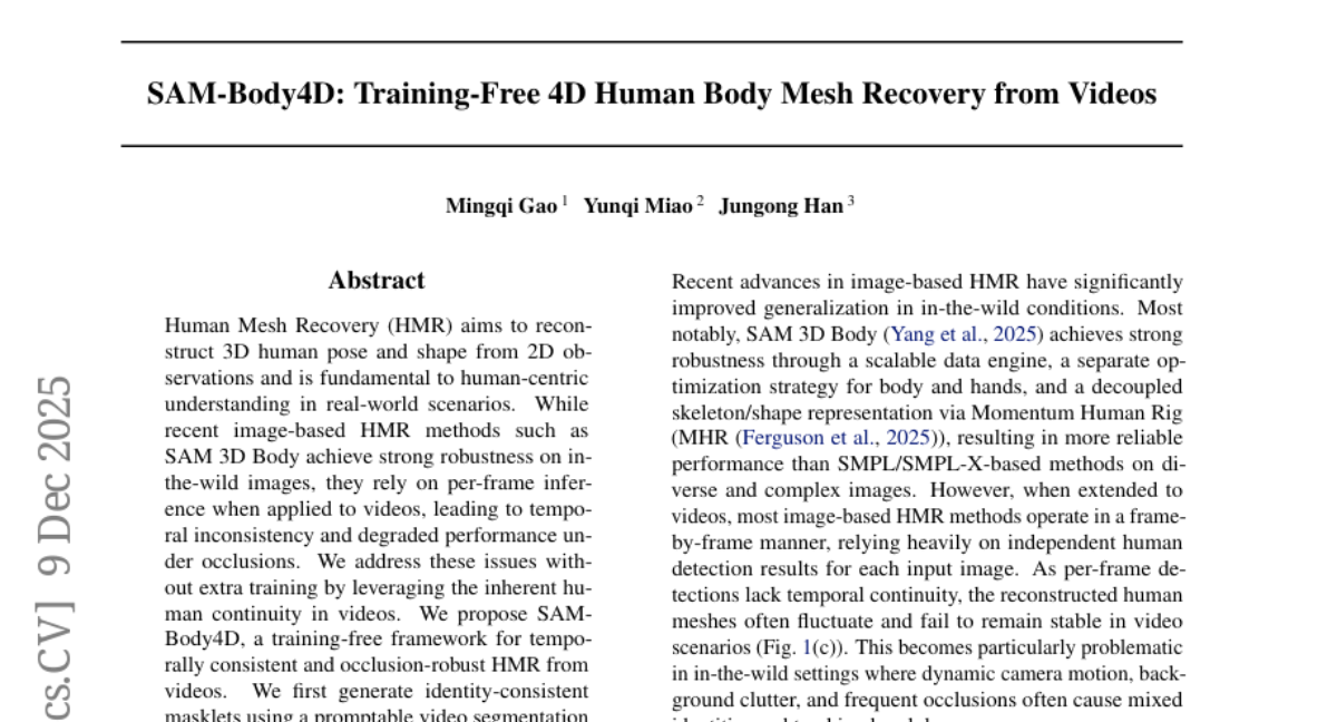 ๐ Keywords: Human Mesh Recovery, Temporal Consistency, SAM-Body4D, Occlusion Robustness, Parallel Strategy